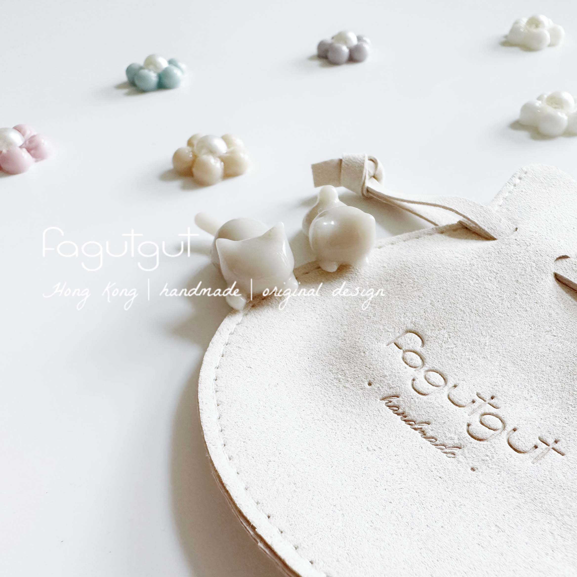 fagutgut 花吉吉手作 - 高度防敏感耳環 - 白花小貓咪閃石 (耳釘/耳夾)