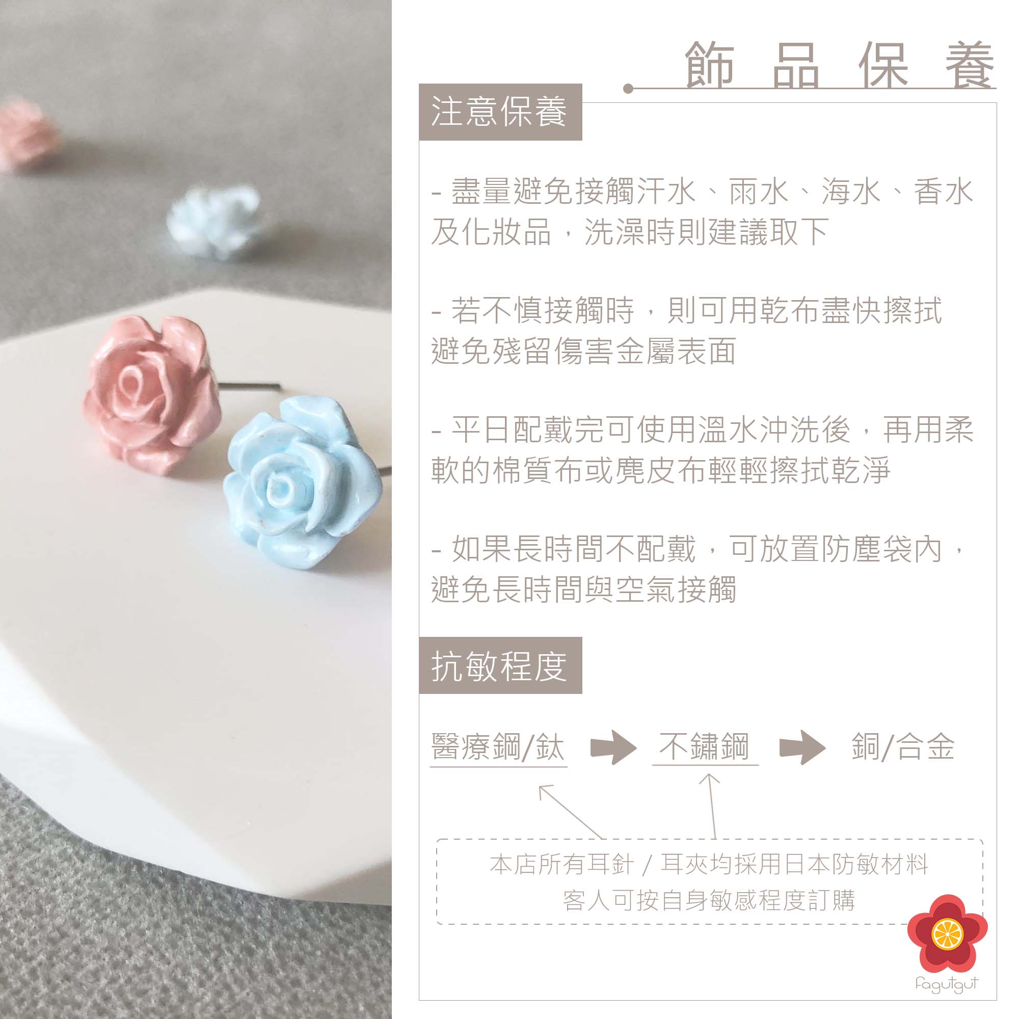 fagutgut 花吉吉手作 - 高度防敏感耳環 - 簡約玫瑰花 (耳釘/耳夾)