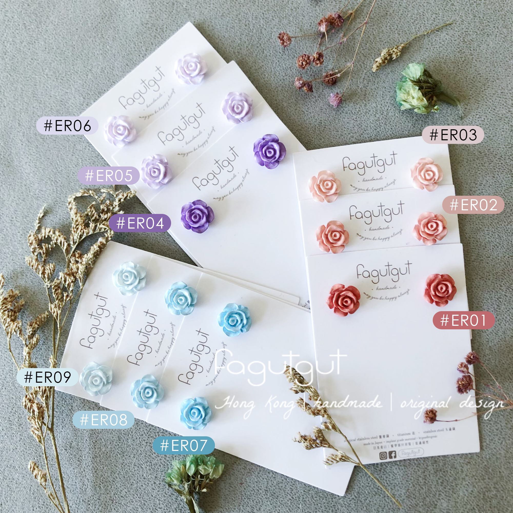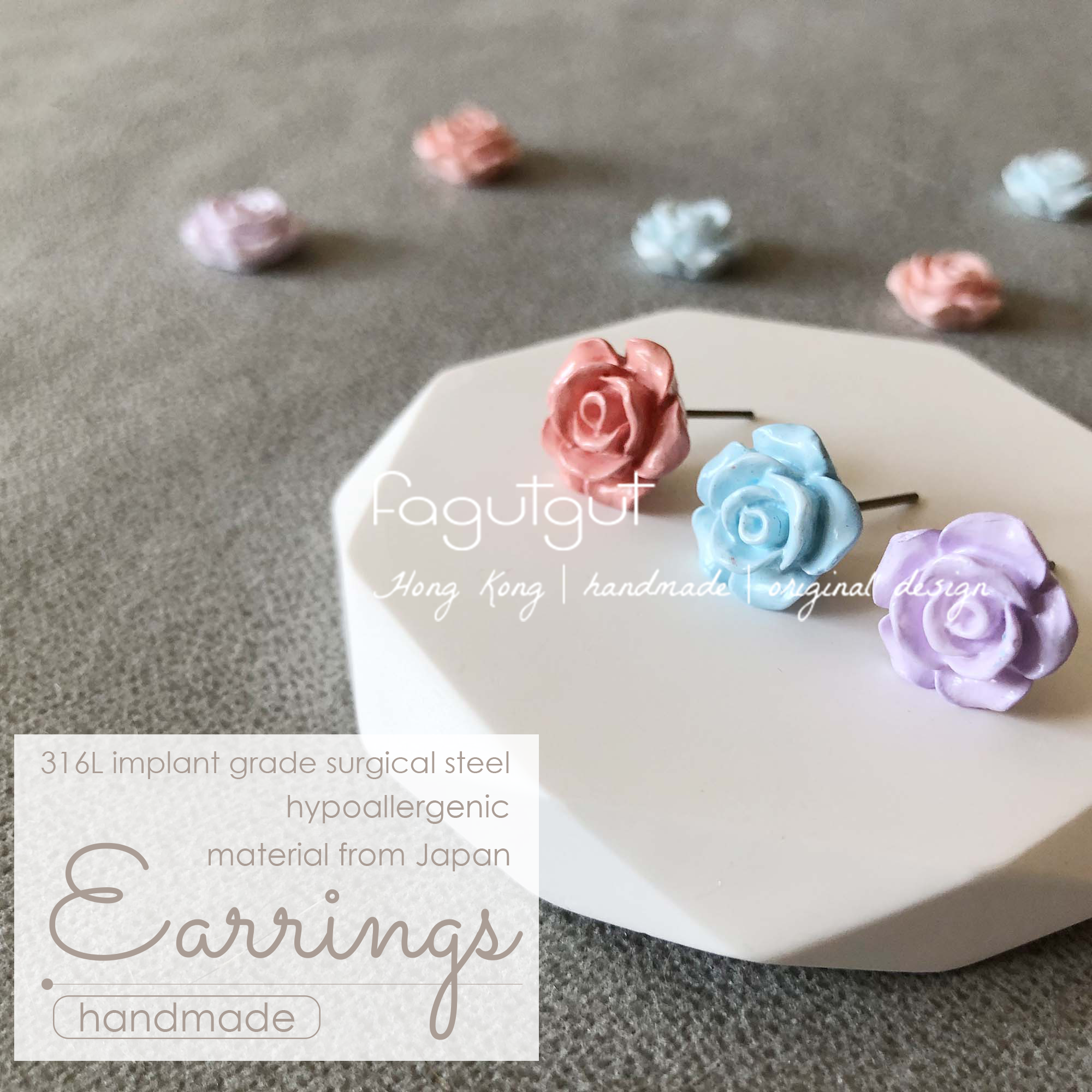 fagutgut 花吉吉手作 - 高度防敏感耳環 - 簡約玫瑰花 (耳釘/耳夾)