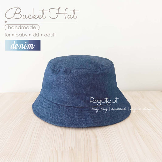 fagutgut 花吉吉手作 - 牛仔布漁夫帽(可配人寵親子裝) - 平頂款 - 可調節 - 牛仔藍色 (嬰兒 / 兒童 /成人)