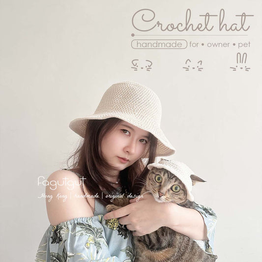 fagutgut 花吉吉手作 - 鈎織漁夫帽(可配人寵親子裝) - 寵物帽 - 米白色