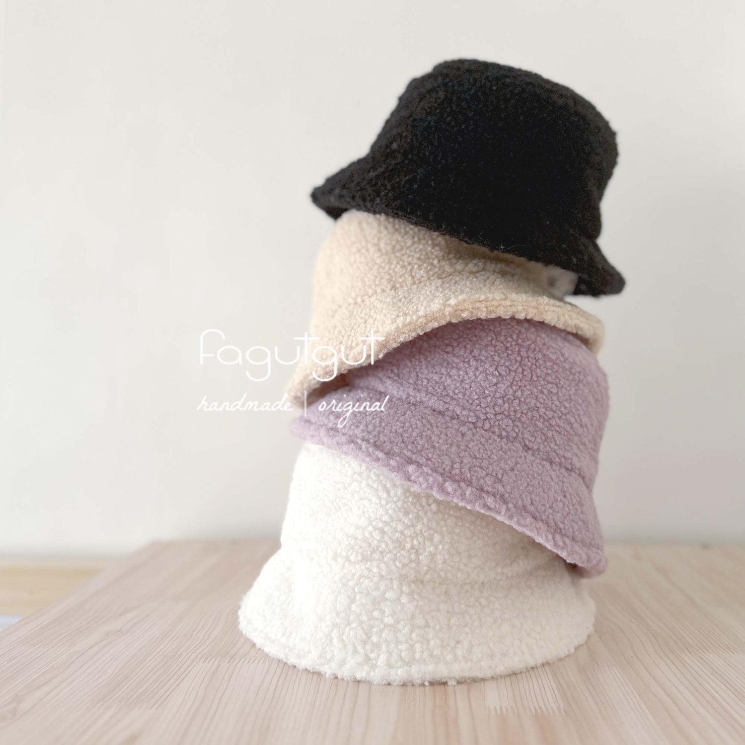 fagutgut 花吉吉手作 - 手工羊羔絨漁夫帽(可配人寵親子裝) - 平頂款 - 可調節 -霧紫色 (嬰兒/兒童/成人)