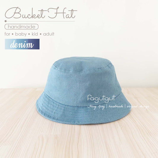 fagutgut 花吉吉手作 - 牛仔布漁夫帽(可配人寵親子裝) - 平頂款 - 可調節 - 牛仔藍色 (嬰兒 / 兒童 /成人)