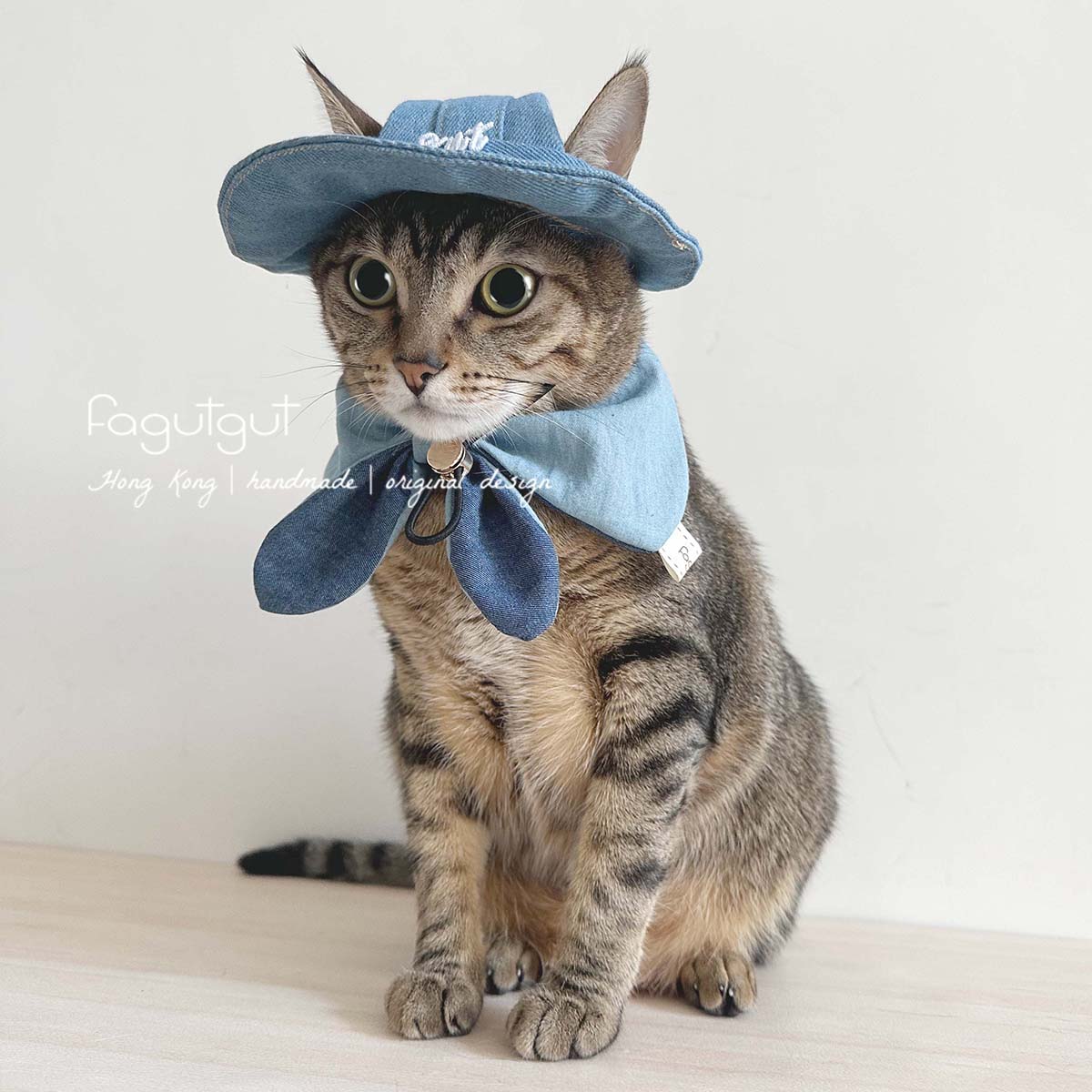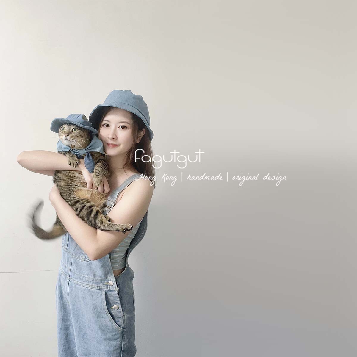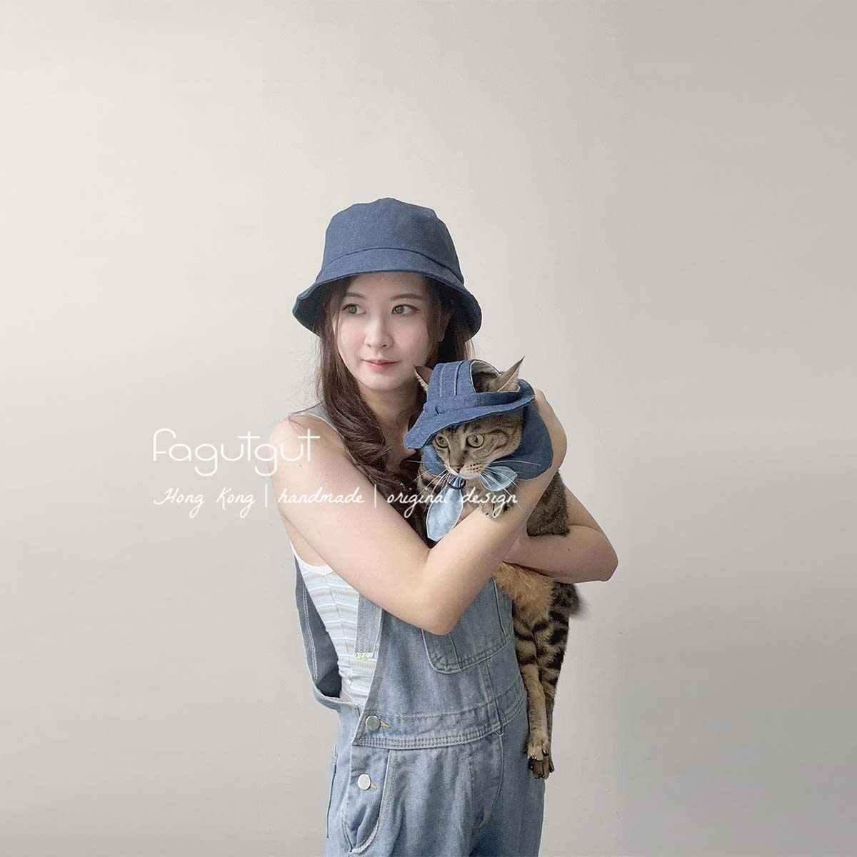 fagutgut 花吉吉手作 - 牛仔布漁夫帽(可配人寵親子裝) - 寵物帽 - 牛仔藍色