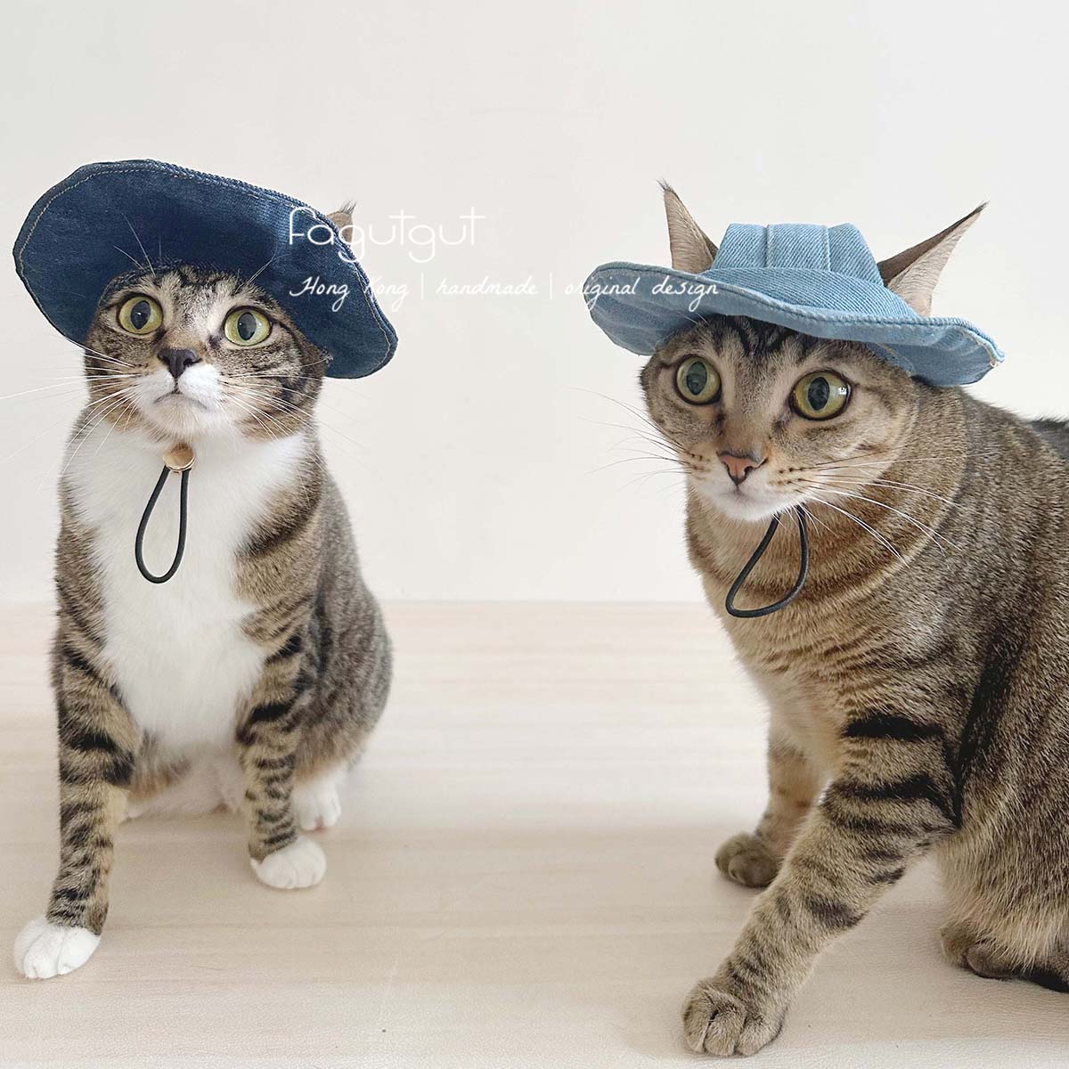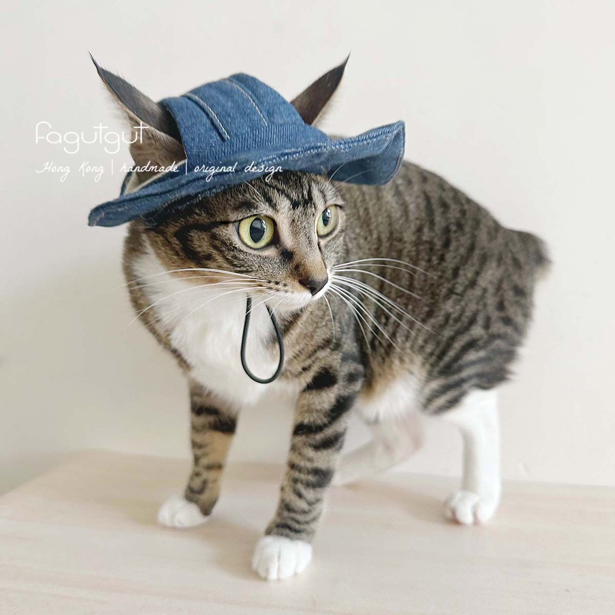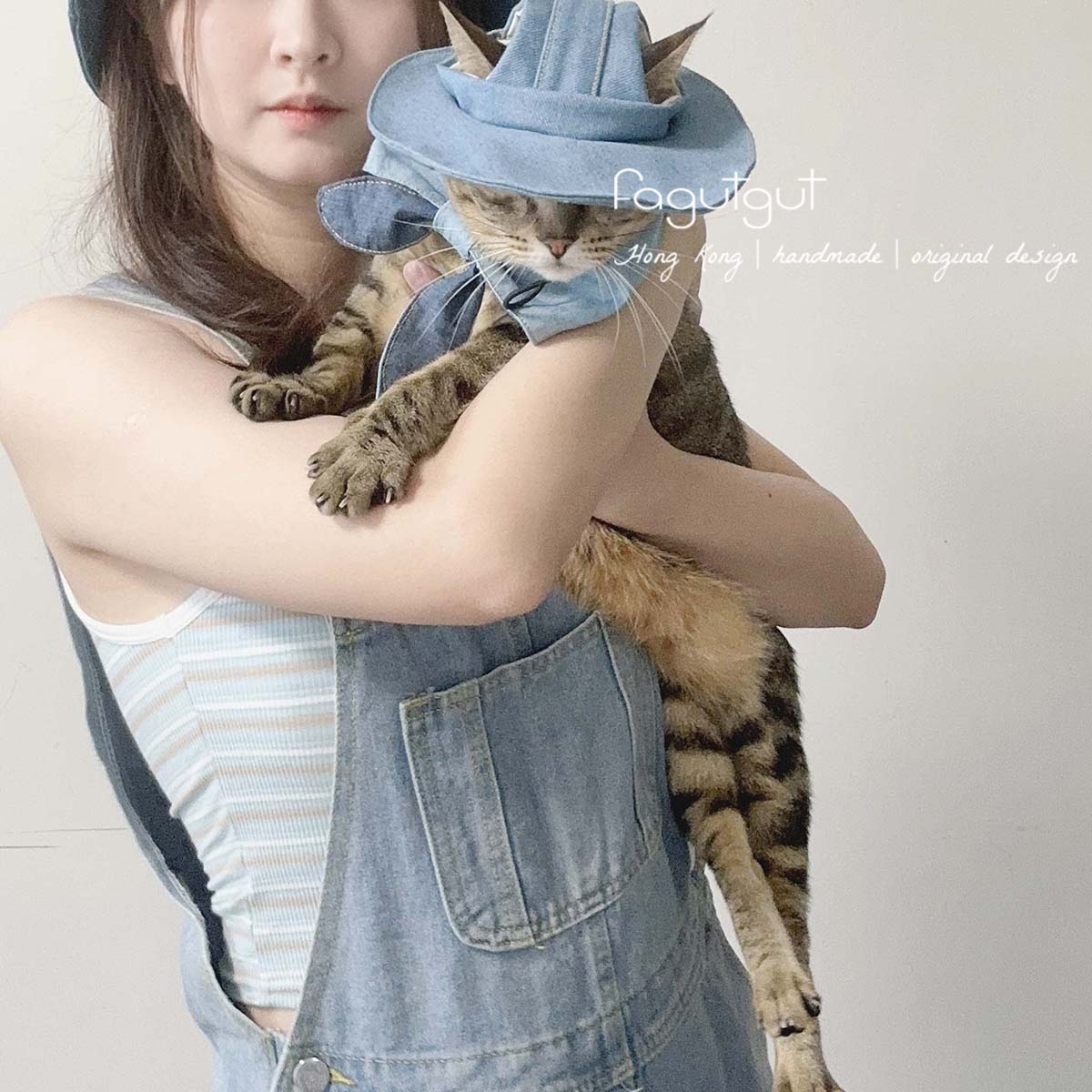 fagutgut 花吉吉手作 - 牛仔布漁夫帽(可配人寵親子裝) - 寵物帽 - 牛仔藍色