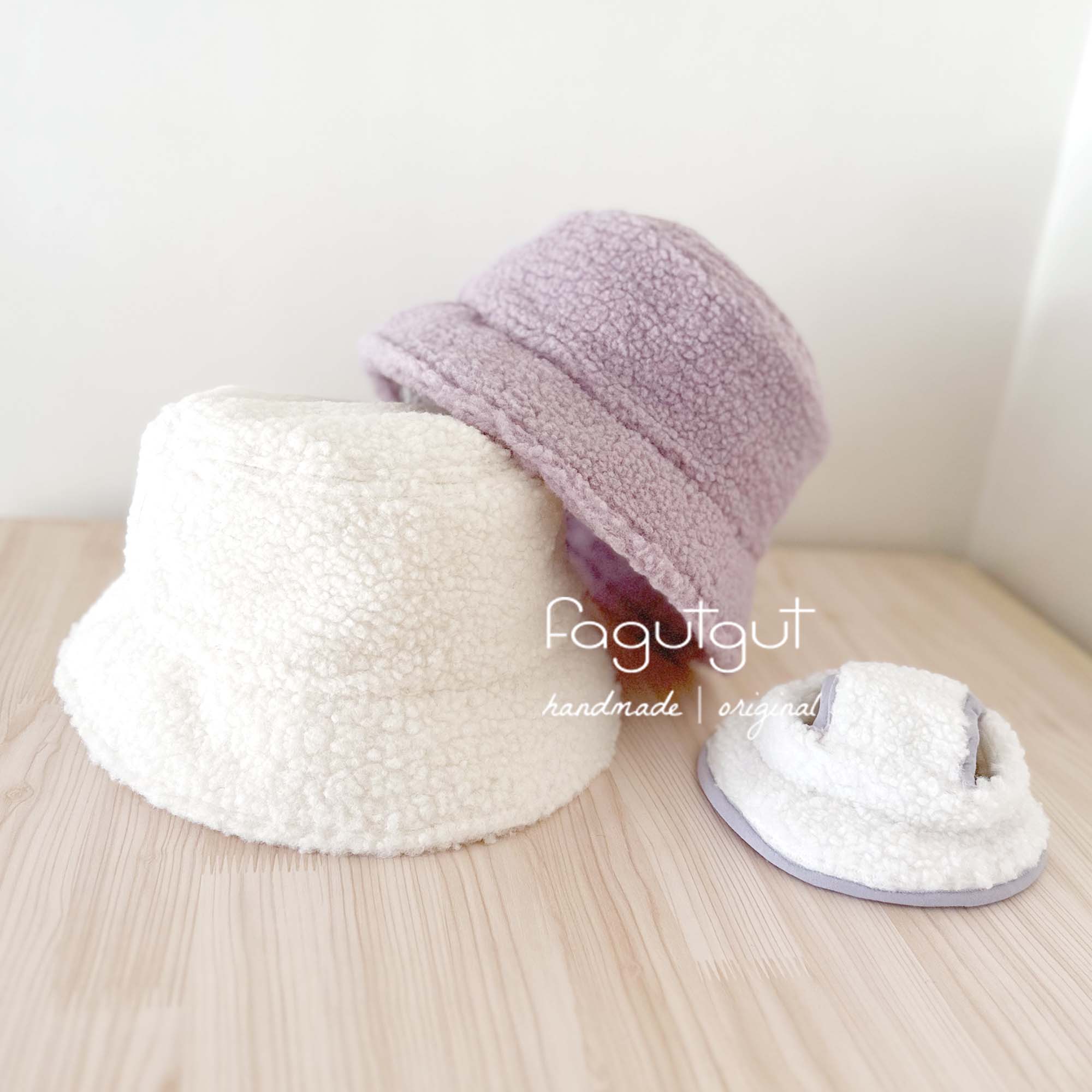 fagutgut 花吉吉手作 - 手工羊羔絨漁夫帽(可配人寵親子裝) - 平頂款 - 可調節 -霧紫色 (嬰兒/兒童/成人)