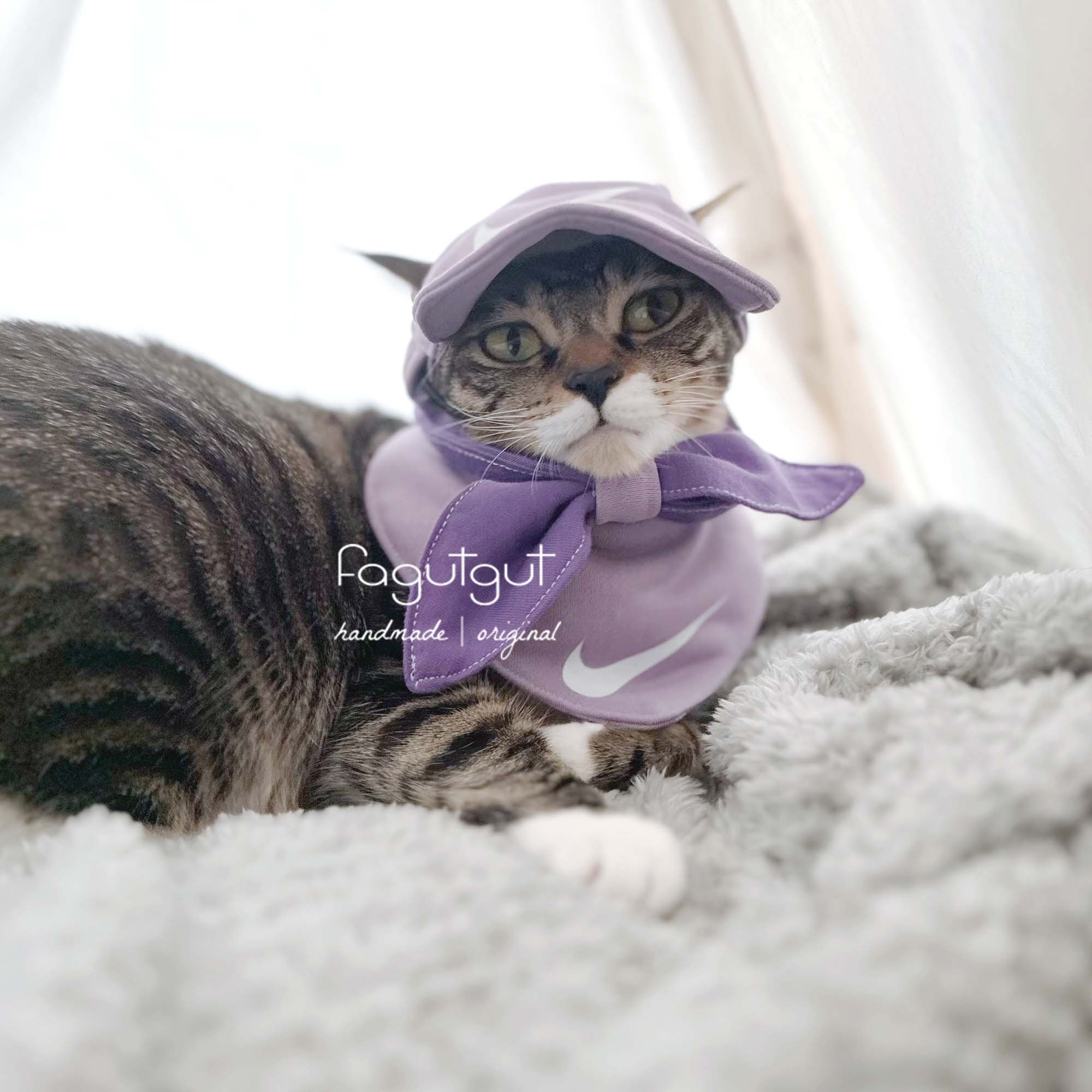 (原價HKD750up!)fagutgut 花吉吉手作 - Remade by Fagutgut - Nike套裝 - 寵物帽+領巾(香芋紫色)