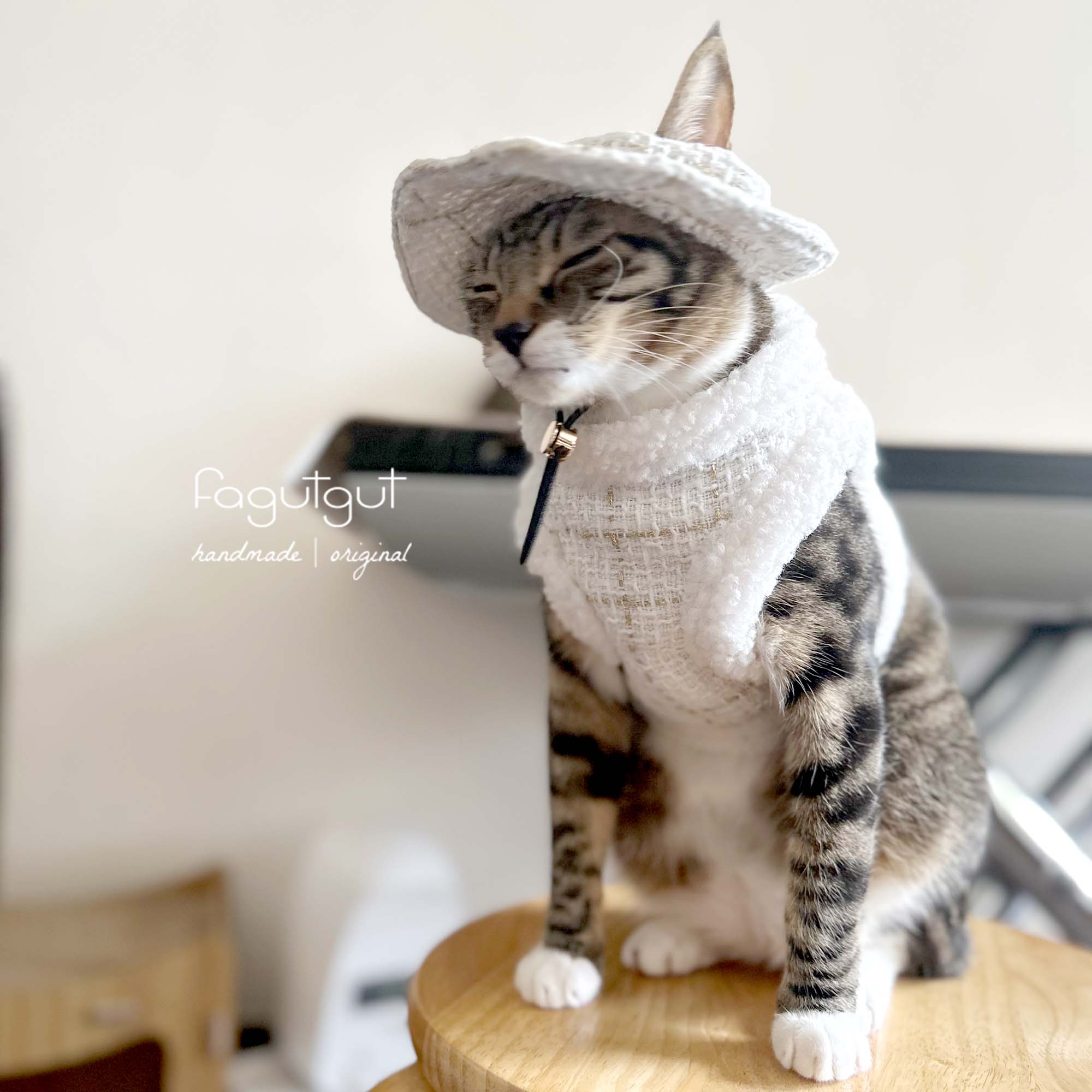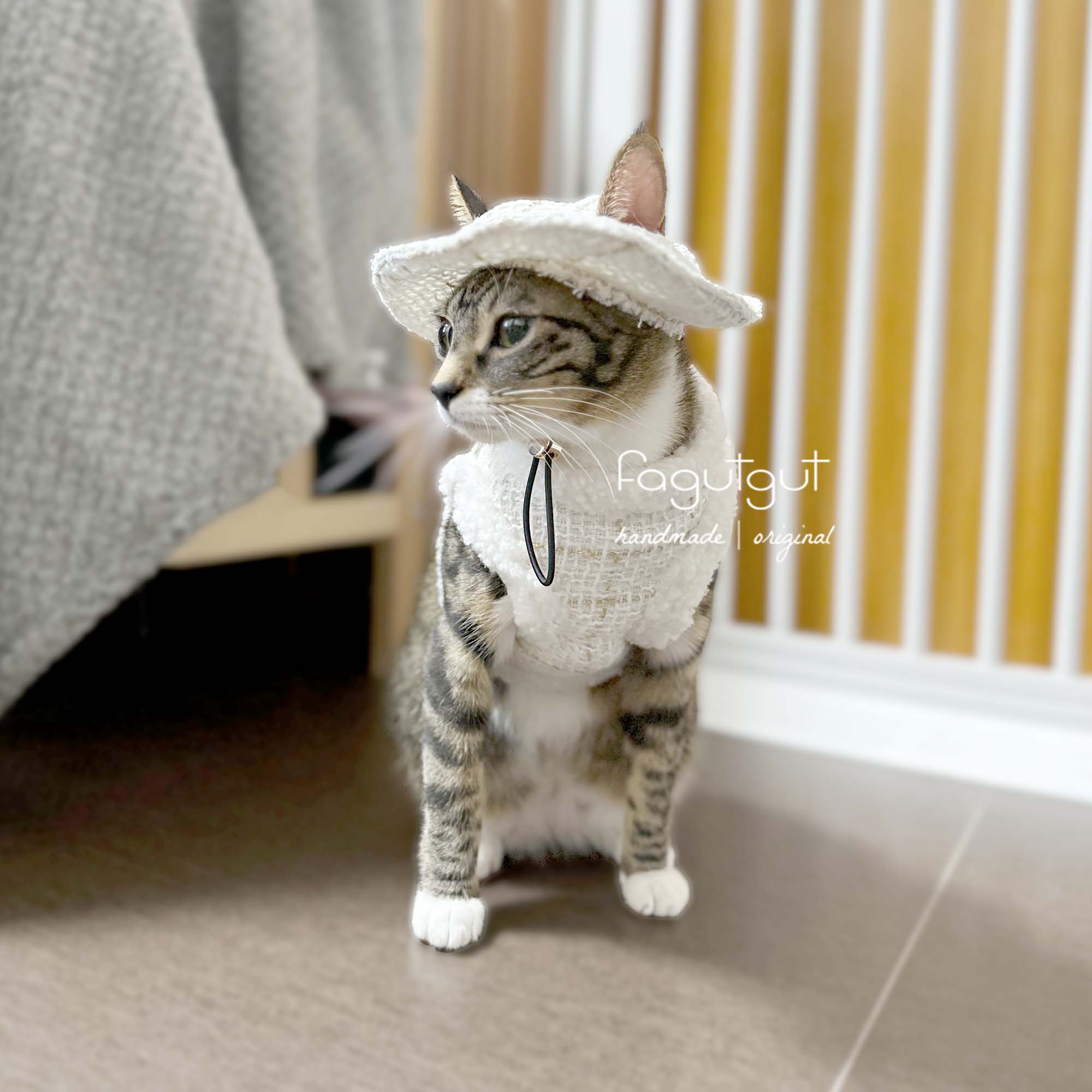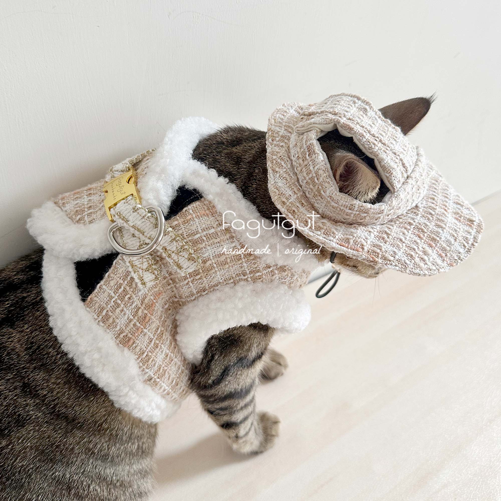 fagutgut 花吉吉手作 - 法式小香風套裝 - 寵物帽+牽引胸背心 (可獨立購買)