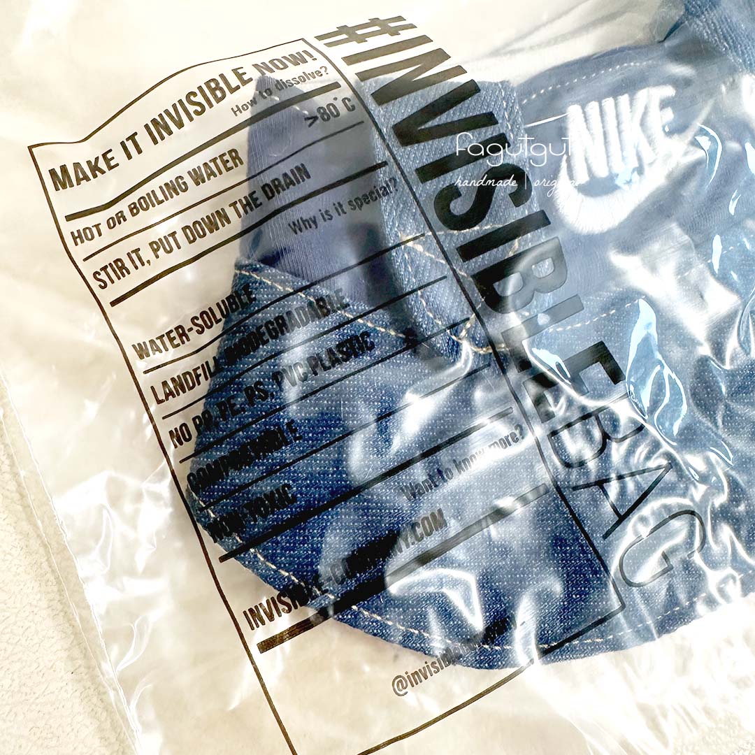「不但能完全溶於水中,更是可在堆填區的缺氧環境中生物降解,及可工業堆肥的環保包裝袋。它同時通過實驗測試證實對環境無毒無害,不會形成微塑膠,為生產商及品牌帶來環保新選擇 —— 把傳統塑膠包裝取而代之達至源頭減廢。」-Invisible Company